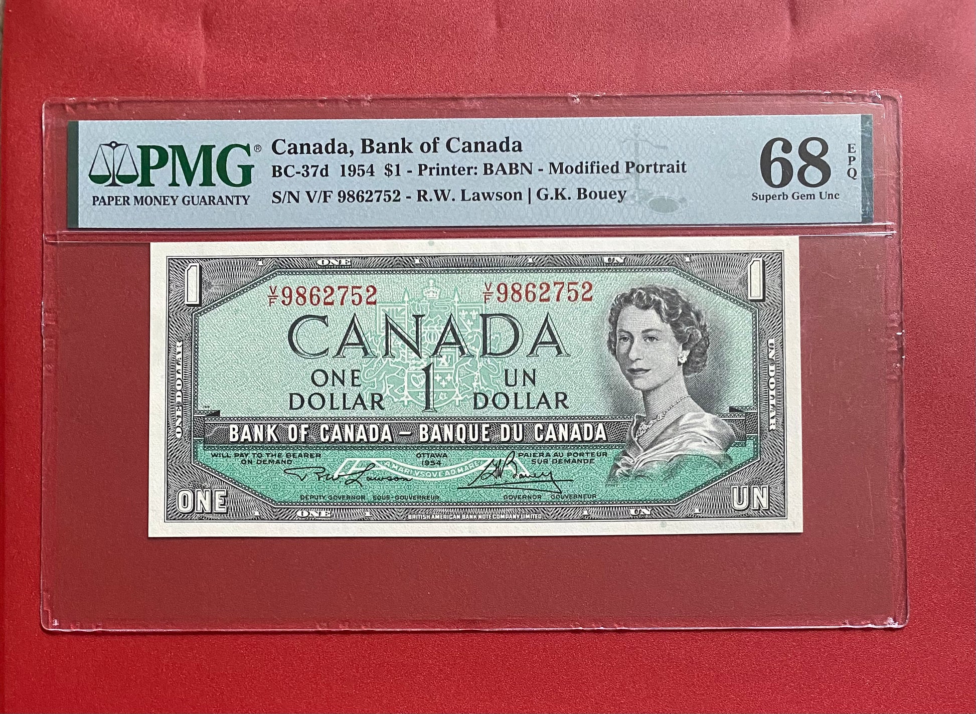 1954 CANADA $1 NOTE PMG GRADED SUPERB GEM UNC-68 “TOP POP” #9862752